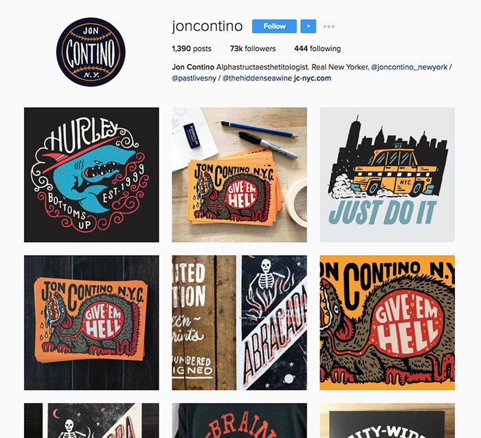 Jon Contino is a New York designer and illustrator with a distinct and delightful style. His work is gritty and displays influences of historical New York, contemporary street art and the lost art of hand-drawn lettering.
