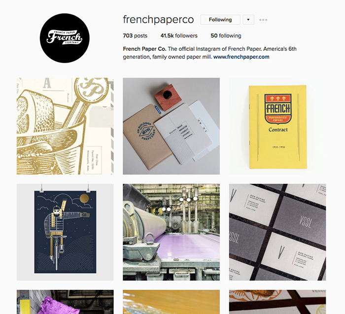 At BatesMeron, we are die-hard paper lovers. Of all the stellar paper brands we love, French Paper Co. really takes the cake when it comes inspiring designers. Two parts eye-candy and one part how it’s made, they continually work with amazing talent to create exciting promotion materials and share beautiful projects people make with their paper. Their feed also gives us a glimpse into the paper-milling world with beautiful photographs of their process and machinery.