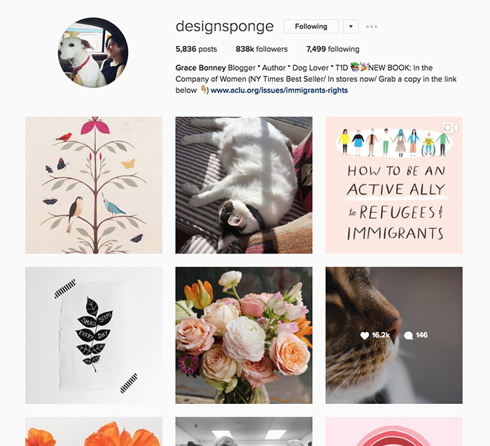 Our copywriter Anna loves Design Sponge, a quintessential home style blog. “Their Instagram is full of really aesthetically pleasing images—everything from interiors to typography to textures and color palette inspiration.”