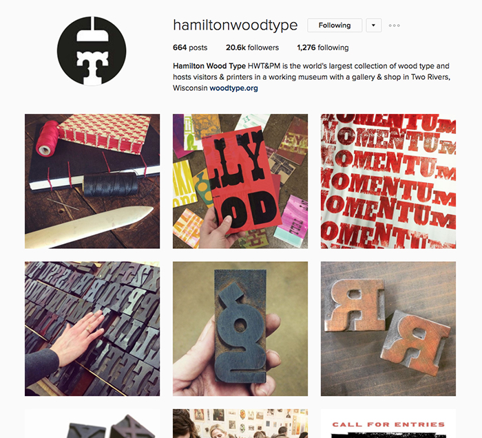 If you are lucky enough to have visited the Hamilton Wood Type and Printing Museum in person, you know it’s a treasure trove of typographic inspiration from a by-gone era. If you haven’t been lucky enough to visit, Hamilton’s Insta-feed brings the museum to you!