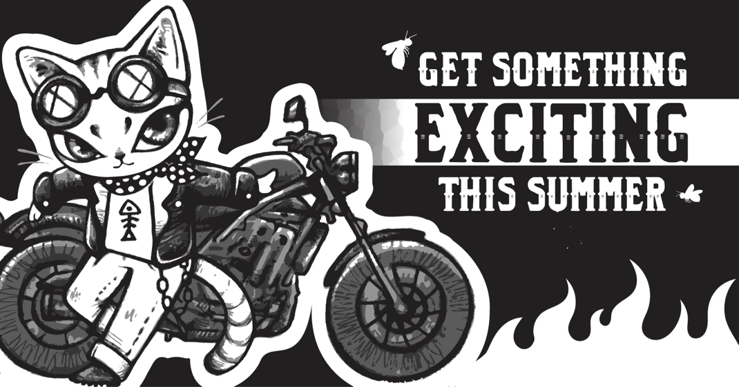 A fun thing to remember is that our passions can influence our work! Take this illustration (which became one of our team hoodies!) based on Dan’s love for motorcycles and her very feisty cat, Lu Ban.