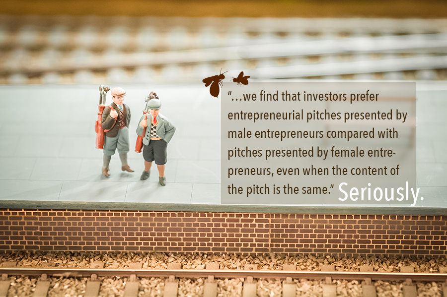 In fact, in a Whorton study, investors who were given the same exact pitch with a female voiceover versus a male voiceover showed that men were selected for the project 68% of the time. THE SAME PITCH.
